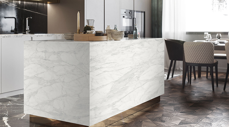 設計理念:?其自然形成的紋理,很有自然山脈風景的感覺。白底黑色紋路的大理石,自帶高貴的藝術屬性。當覺得黑白對比太過強烈時,設計師用接近黑的炭灰色,減少了人們視覺上的不適感。