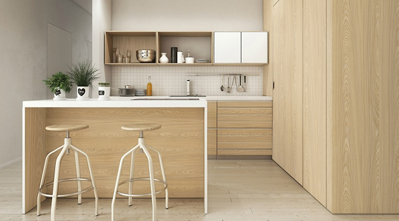 設計理念:春天到了,夏日還會遠嗎?清新自然的白蠟木飾面,流暢的紋理、淺淺柔和的色調,搭配布藝軟裝和藤蔓綠植。