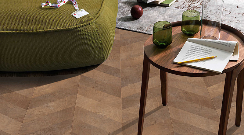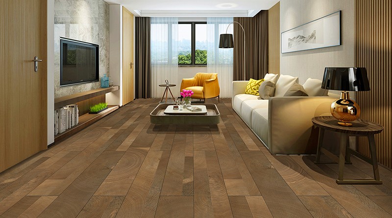 設計理念:?托斯卡納胡桃魚骨地板飾面,包涵著托斯卡納風格的精髓。設計注重對紋理、拼排和顏色塊面的靈感性運用。深淺不一的胡桃拼塊交叉拼排,產生一種節奏感的視覺效果,給人一種強烈的永恒與威嚴感。